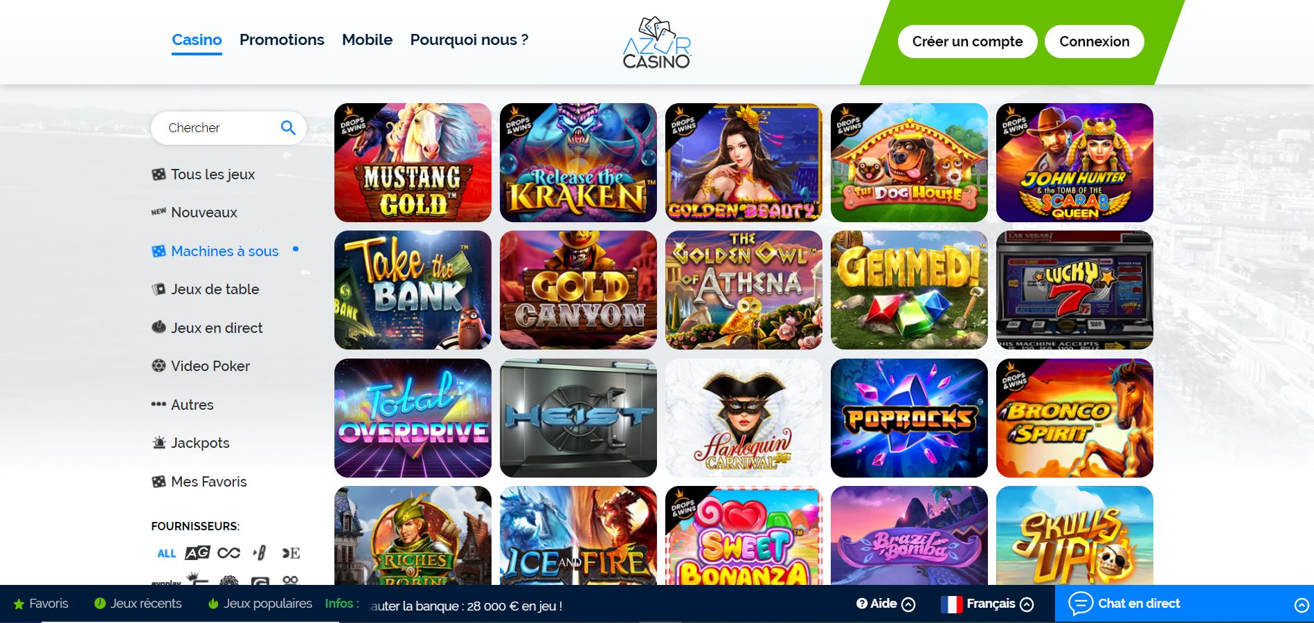 Azur casino est présent sur le web depuis 2017. Cette plateforme enregistre des milliers de visites chaque jour, faisant d’elle l’un des casinos en ligne les plus fréquentés du moment. Son succès est notamment dû à la diversité de ses jeux, à l’originalité de ses bonus, et à sa proximité avec ses joueurs.