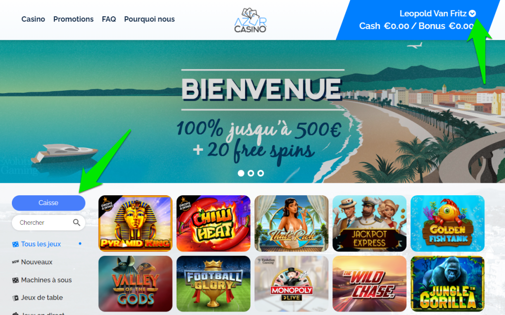 Pour accueillir ses nouveaux abonnés, Azur propose un bonus de bienvenue avec des tours gratuits. Sur leurs premiers dépôts, les nouveaux inscrits sur le site peuvent avoir accès à 100 % de bonus et 20 tours gratuits sur la machine à sous That’s Rich ou The Hive. Pour l’activer, cliquez sur le coupon qui vous sera présenté après votre inscription.